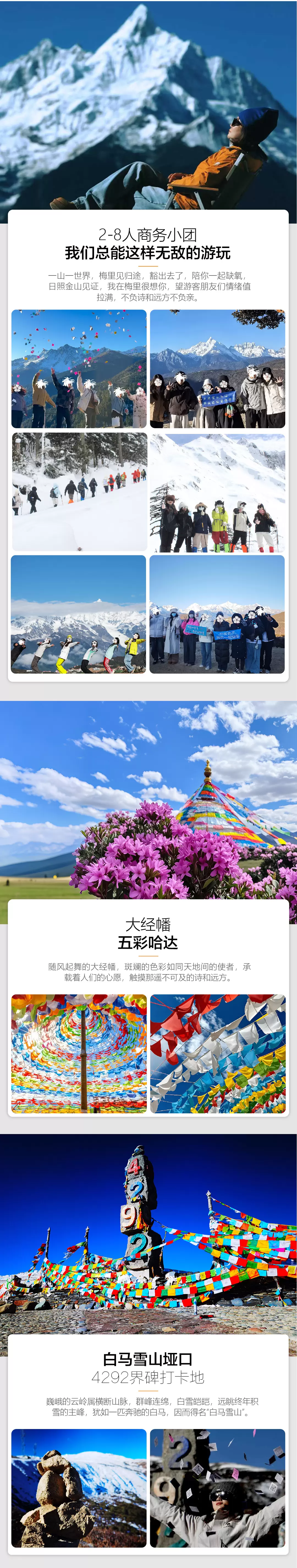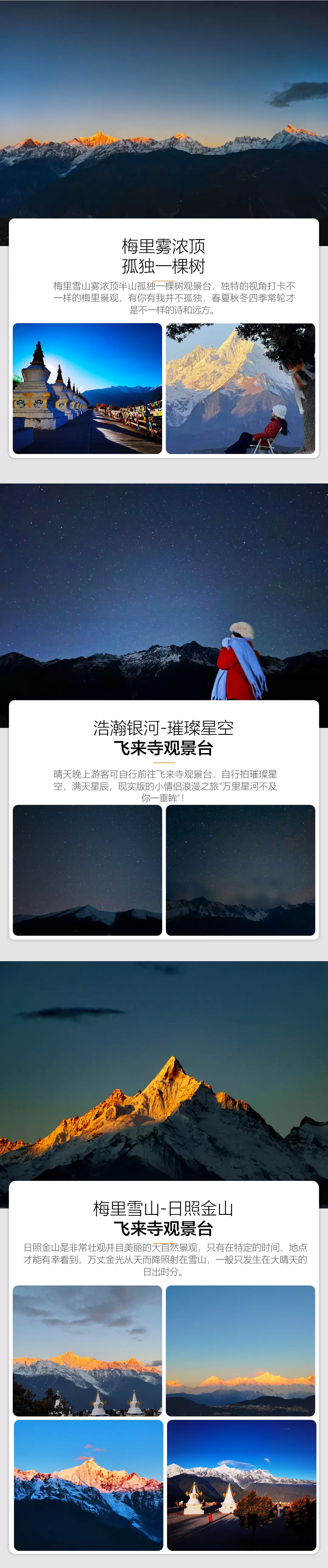 香格里拉+梅里雪山+孔雀山垭口二日游【飞来寺+雾浓顶+白马雪山垭口-看日出+徒步-8人纯玩小团】