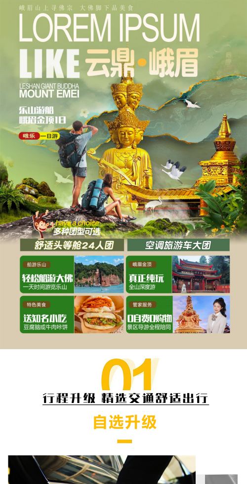 乐山大佛+峨眉山金顶一日游【赠三环内接早+门票+特色餐食】【1:纯玩出行-真纯玩,无套路,行程透明,无隐形消费,无车销。】