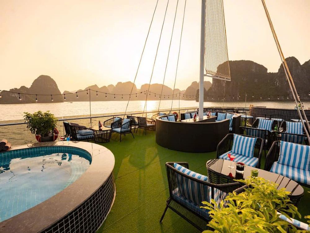▲ 甲板上有现场乐队演奏,二楼有四季恒温的按摩浴缸,您可以一遍欣赏美景一边在按摩浴缸里放松身体,也可以在甲板上参加一场浪漫音乐落日派对;