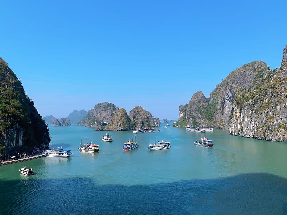 ▲ 由河内出发:8:00-8:30左右接到客人之后沿着河内-海防-下龙高速,前往下龙国际港码头,车程大约3个小时,途中会休息15-30分钟,11:30-12:00到港口。 下龙湾港口出发,11:30-12:00集合(具体时间、地点出发前一天工作人员联系通知)。 乘豪华游轮出海,游览世界新七大自然奇观之一的下龙湾。