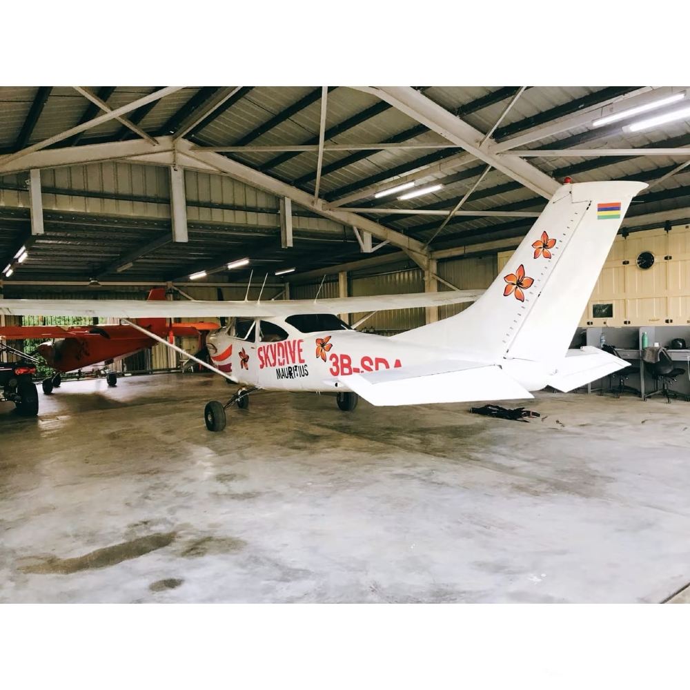 ▲ 乘坐C182飞机起飞 登上我们的跳伞飞机,感受随着高度的提升而愈发激动的心情。享受25分钟的空中之旅,饱览毛里求斯迷人的海岸线和翠绿的景色——肾上腺素飙升前的宁静!