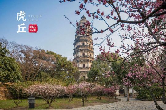 “到苏州不游虎丘,乃憾事也”,苏东坡早已给虎丘做了广告,这座海拔仅36米的小山因风景秀美、人文荟萃而生辉。山脚的试剑石据说是吴王阖闾试莫邪剑的地方;山腰的剑池据说是阖闾的埋葬地;登上山顶,可以与苏州地标——倾斜的云岩寺塔合影。