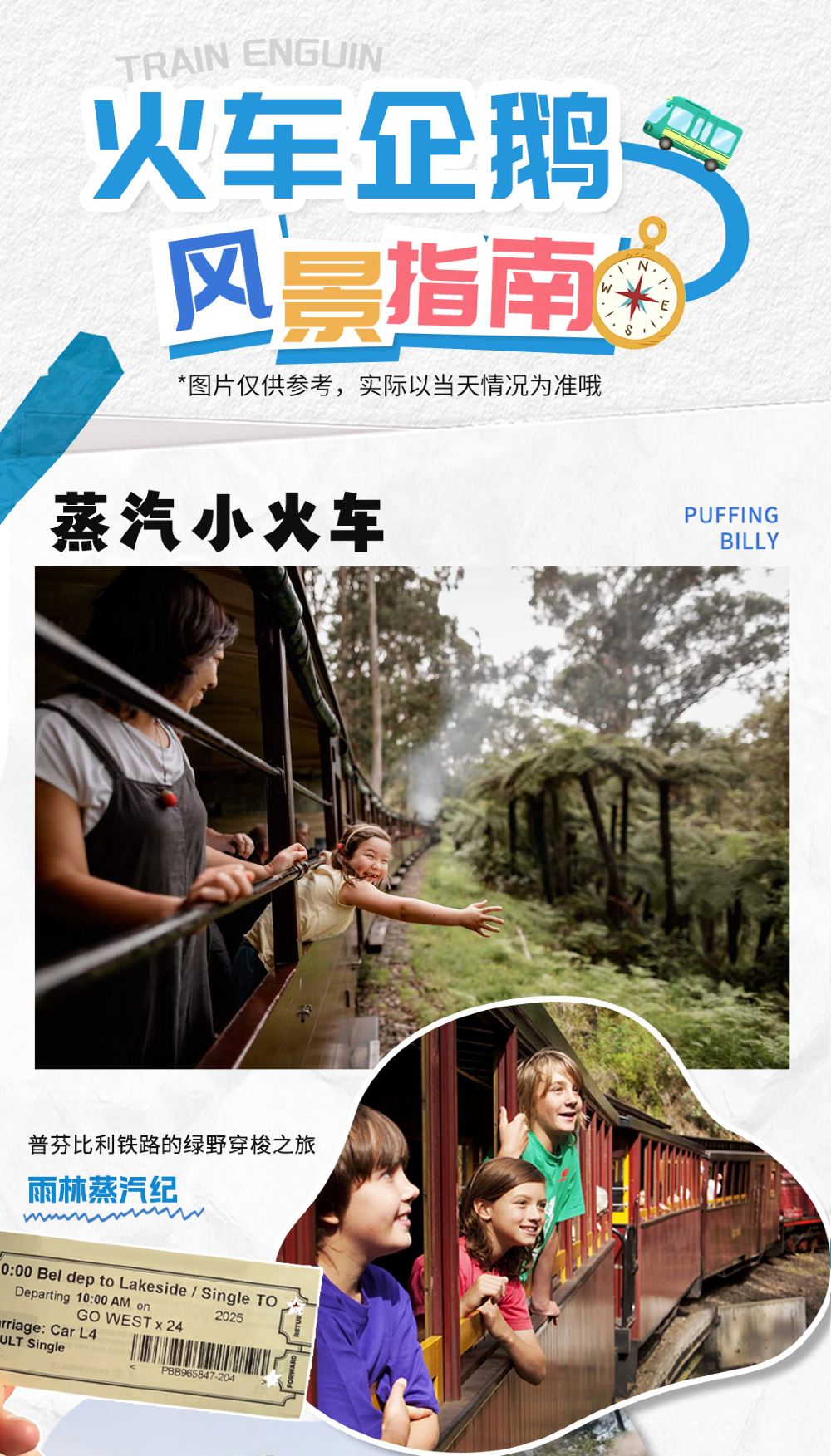 【圣诞元旦有位】墨尔本普芬比利蒸汽小火车+小企鹅菲利普一日游【乘百年复古火车穿梭,沉浸式感受时光韵味;黄昏见证企鹅列队归巢,萌态尽显】