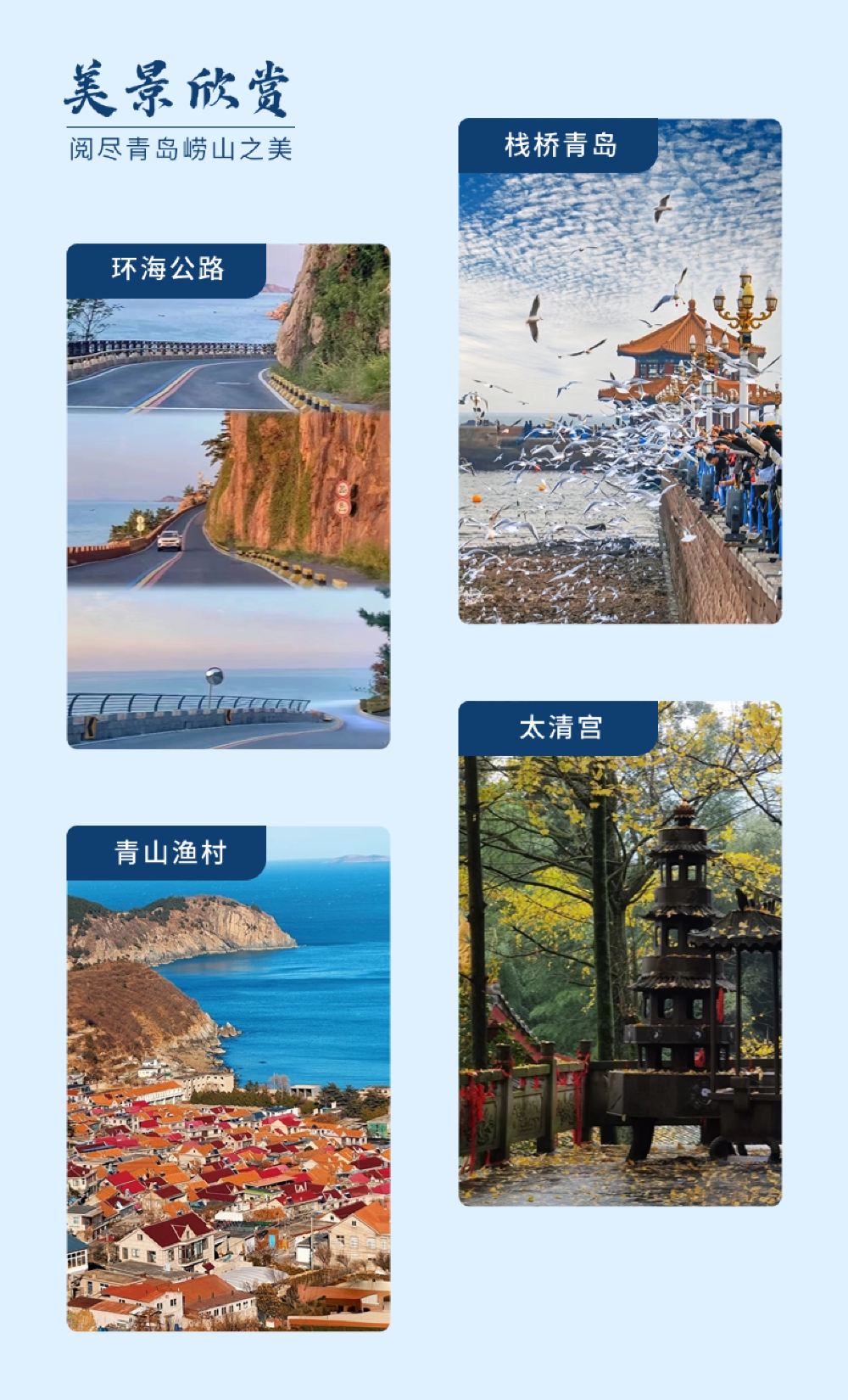 青岛崂山风景区纯玩包车一日游【直达崂山/青山渔村/环海公路】【【省心直达】直达崂山景区内免换乘,更省心,套餐均含市区接送!】