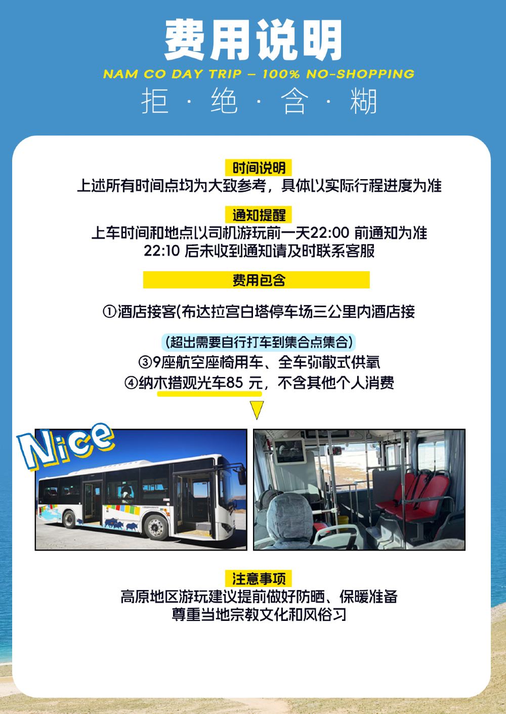 C:25人团,26座2+1航空座椅,集合点集散,不含85元观光车,车载制氧,可自携氧气,专业老司机驾行,圣湖深度游,纯玩无购物,高性价比优选