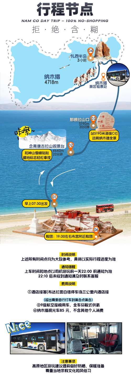 B:25人团,26座2+1航空座椅,集合点集散,含85元观光车,车载制氧,可自携氧气,专业老司机驾行,圣湖深度游,纯玩无购物,高性价比优选