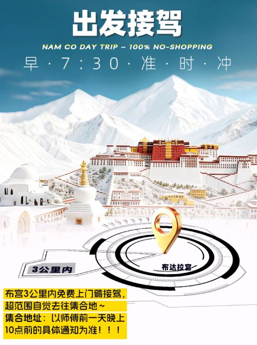 A:8人团,9座7靠窗航空椅,布宫3公里内上门接,含30元藏餐+85元观光车,全程车载供氧,可自携氧气,资深老司机护航,圣湖深度游,纯玩0套路