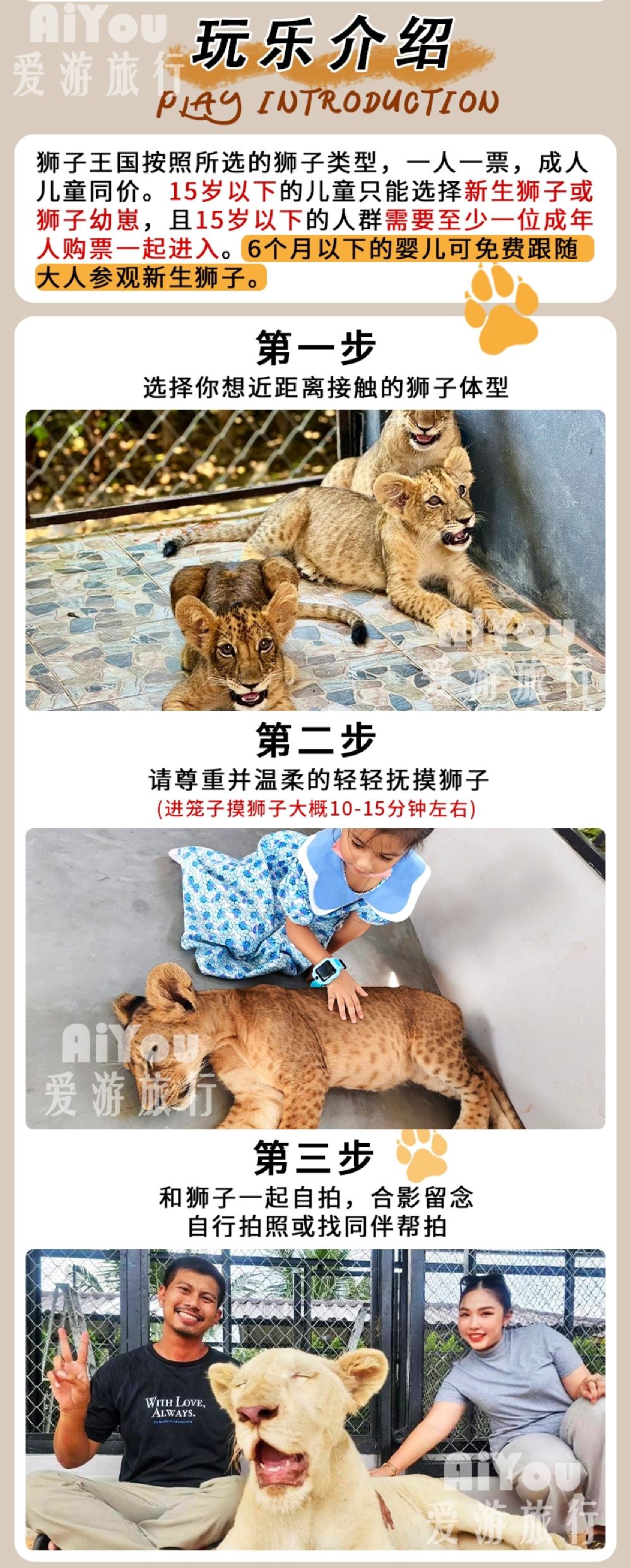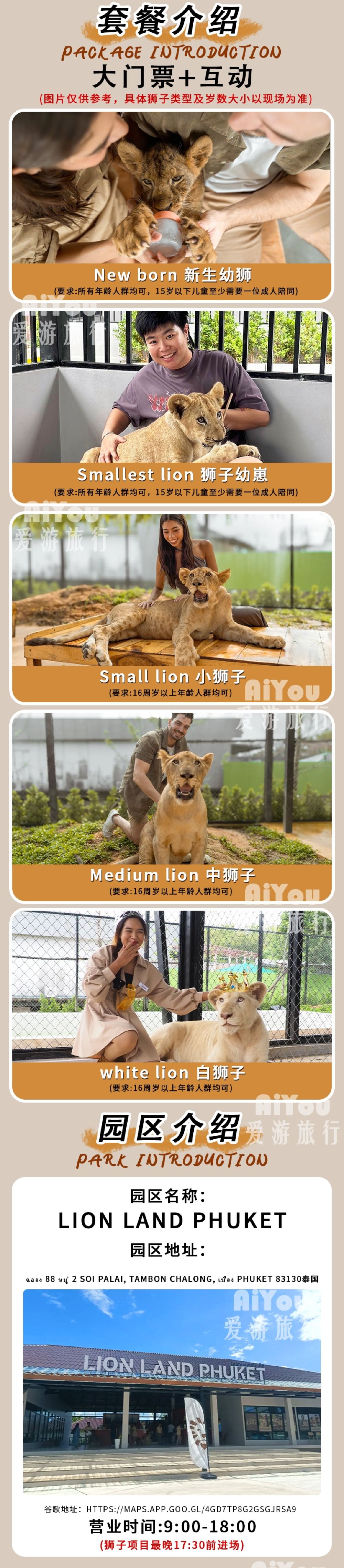 15岁以下的儿童只能选择新生狮子或狮子幼崽,且15岁以下的人群需要至少一位成年人购票一起进入。