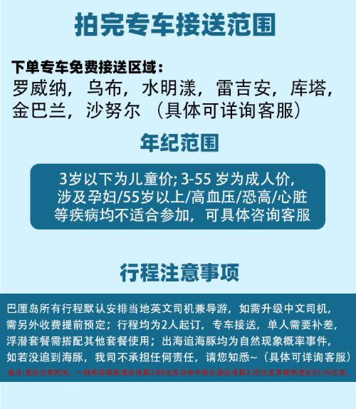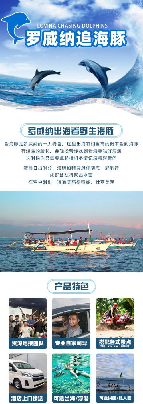 多订优惠】巴厘岛罗威纳追海豚一日游可加浮潜海钓滑翔伞ATV【适合家庭,情侣,朋友单独出游,单人可订】