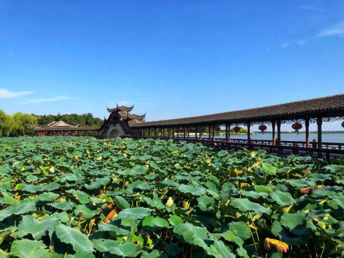 【锦溪古镇】沿着水巷走到老街尽头,眼前一片开阔,一汪泊满摇橹船的池塘前坐落着始建于南宋的莲池禅院和文昌阁,寺内香火甚旺。禅寺附近的湖面上,每逢夏季,青莲繁茂,映衬着古莲桥,景色非常唯美,是取景摄影胜地。湖面上还静卧着陈妃水冢,是南宋孝宗皇帝的宠妃之墓,据说不管水位如何变化,水冢总是露在湖面上,是一处名景。