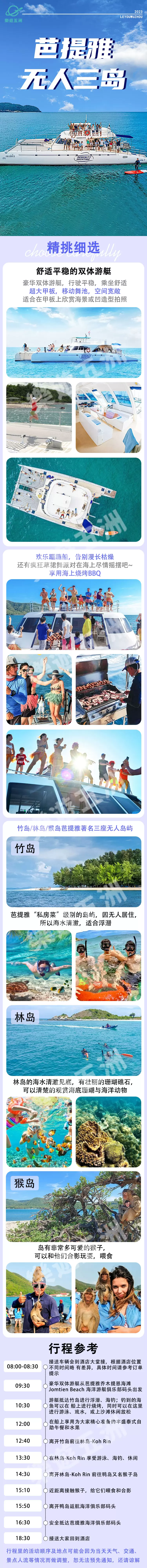 芭堤雅林岛Koh Rin+鸭岛koh ped(也称猴岛)+派岛一日游【芭提雅海上狂欢/浮潜烧烤海钓/无人岛】