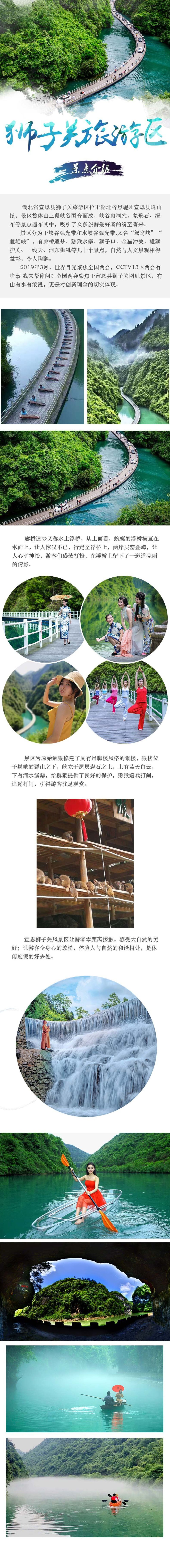 狮子关是湖北省恩施宣恩古三大关隘之一,此地山势雄伟,有大小岩山五座,山形如虎牙交错,其中有两座石山,状似狮子,扼守通往长潭河的要道,狮子关因而得名。2002年在此拦截洪家河兴建狮子关水电站,加之一座400多米的水上廊桥浮桥,成为宣恩乃至湖北颇有看点的神秘景区之一。