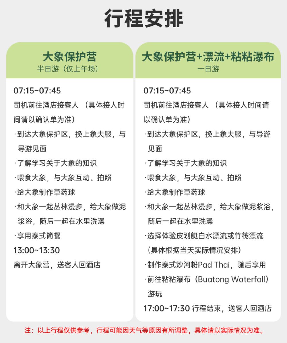 清迈昌泰大象保护营+粘粘瀑布+竹筏漂流一日游【人与自然和谐相处】