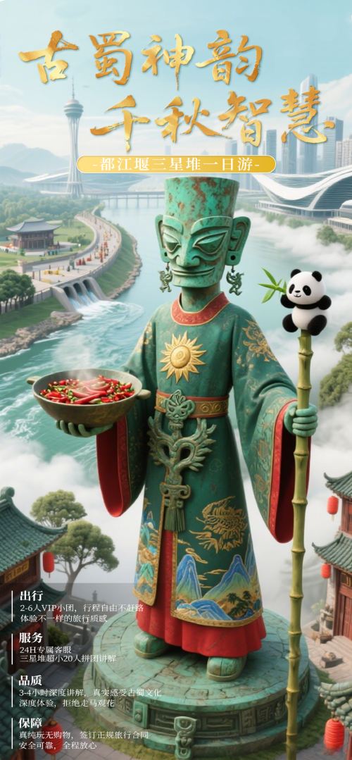【都江堰+三星堆博物馆】2-6人团3H深度讲解·一日游纯玩团【2-6人VIP小团,全程无灌输,拒绝浅层观光。告别被动听课,将时间留给探索与发现。】