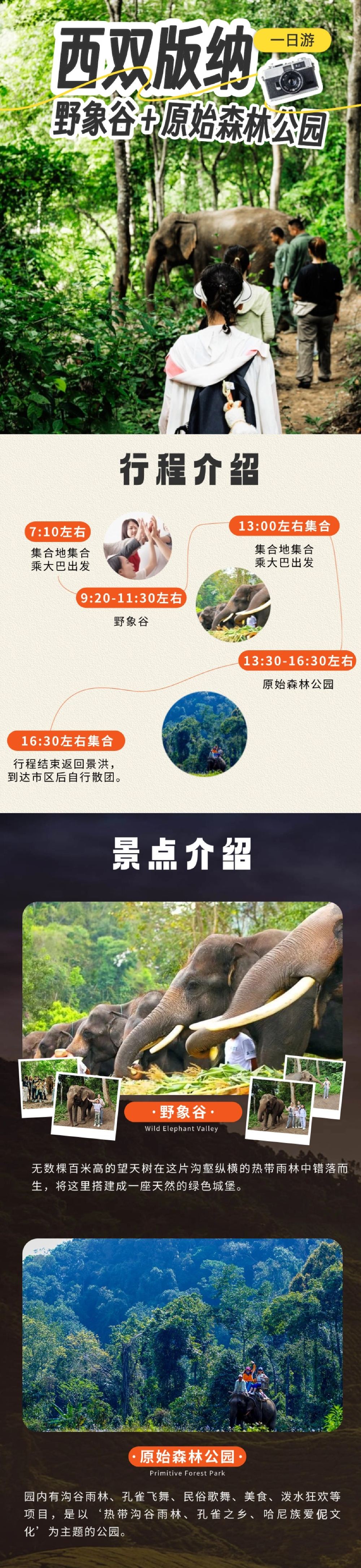 野象谷+西双版纳原始森林公园一日游【纯玩无购物/含中餐】【本社团队均为舒适大巴车,每人一正座保证您的舒适感,空间大,座位舒适,体验过的乘客一致好评】