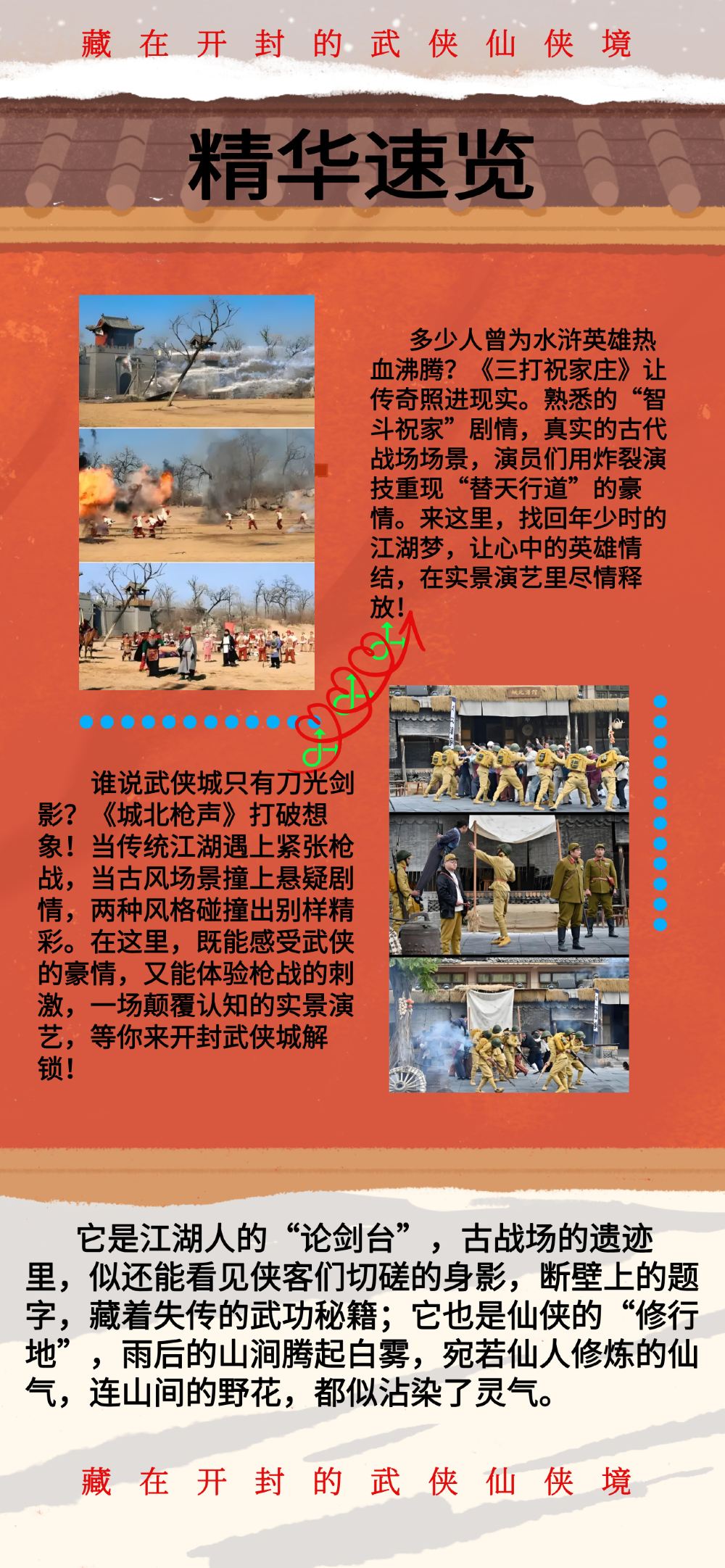 ▲ 开封万岁山的石径,是通往江湖的秘道。抚摸石壁上斑驳的纹路,仿佛触到了侠客刻下的剑痕;听松涛阵阵,恰似武林大会上的人声鼎沸,连山间的溪流,都似侠客杯中倒出的烈酒,激荡着豪情。