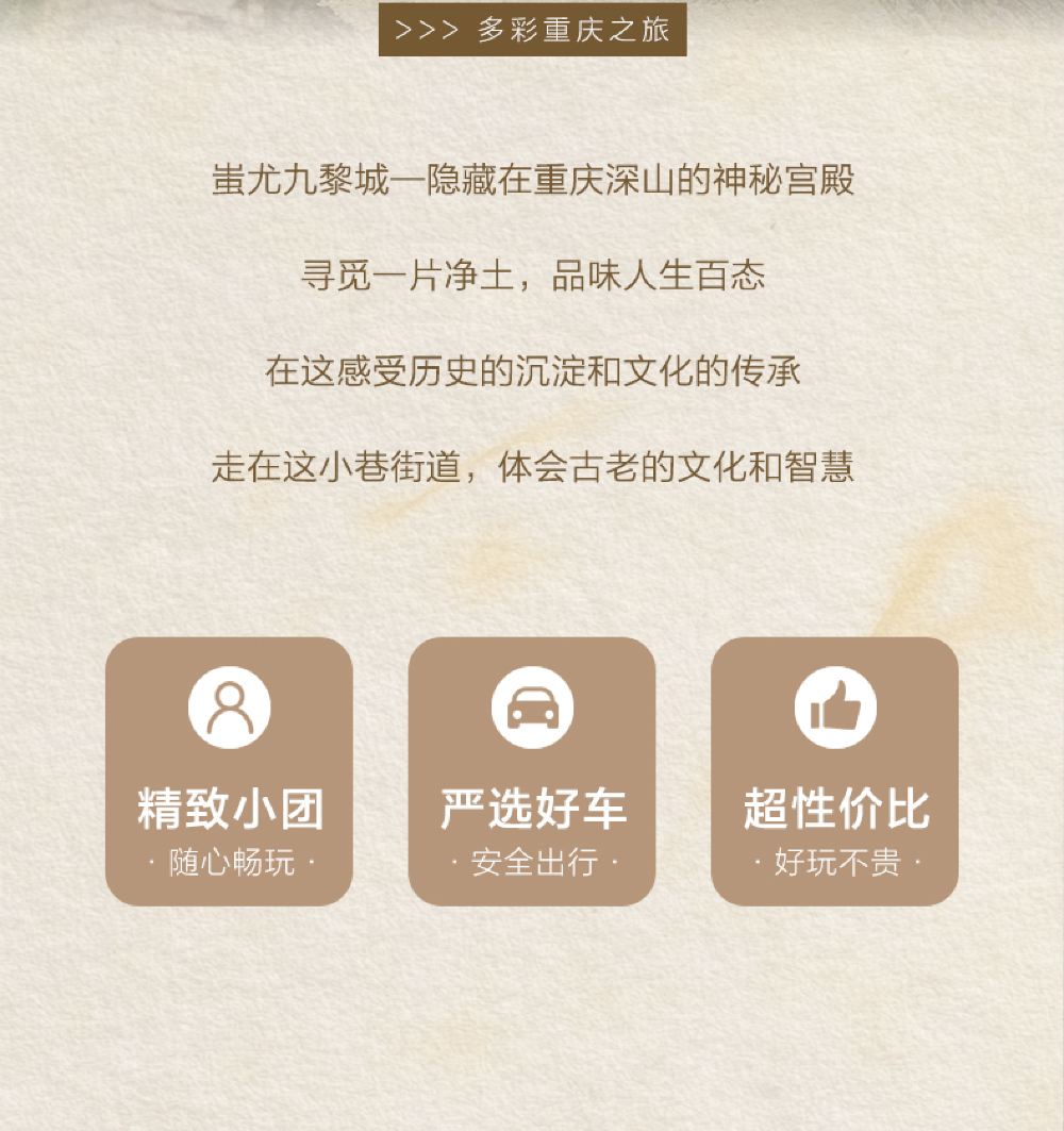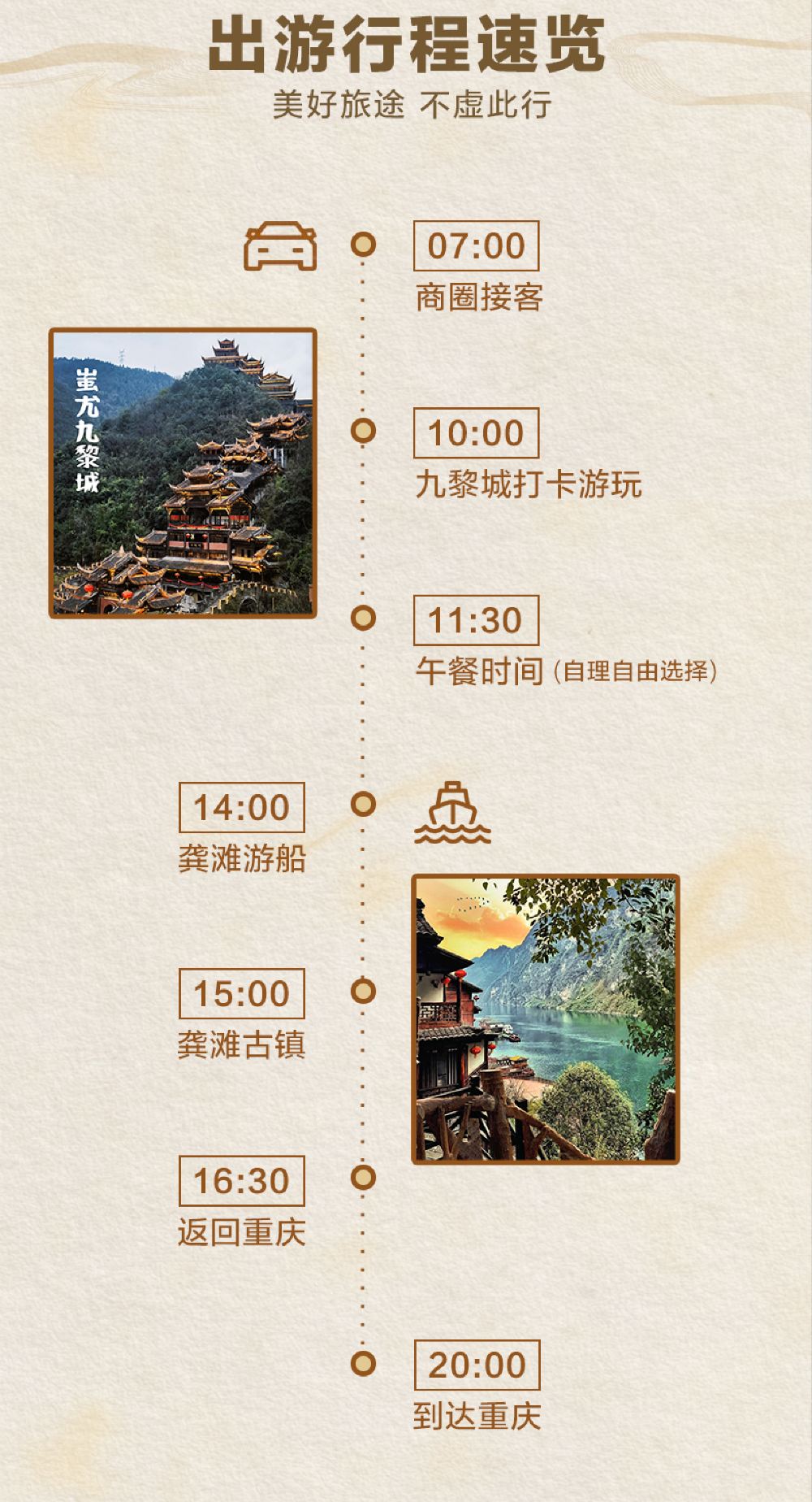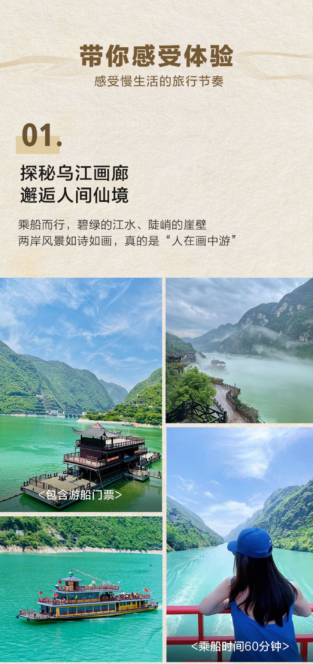纯玩无购物,精品商务小团,覆盖龚滩古镇、九黎城、乌江画廊游船。体验度拉满!