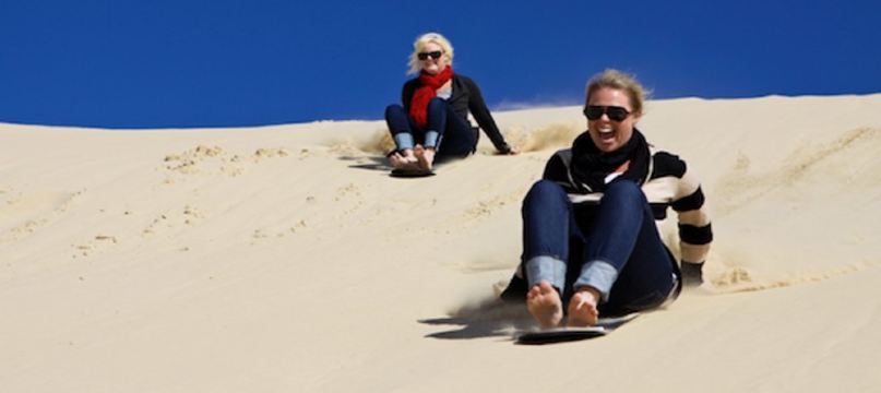 ▲ 独特有趣的户外体验-安娜湾 Anna Bay 滑沙 滑沙是这里非常受欢迎的活动项目,您将乘四驱车到达沙丘顶部,届时会有教练讲解正确的滑沙姿势。脱鞋后坐上滑板,双脚蹬住前沿,双手插入柔软的沙子控制方向和速度,简单易学,随着下滑速度的加快,享受独特有趣的滑沙体验。
