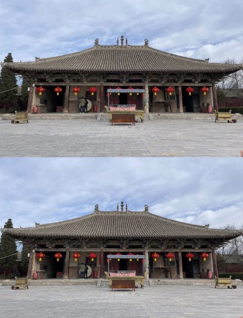 ▲ 万荣稷王庙 是一座供奉农业始祖后稷的古代庙宇。庙内现存的主要建筑为北宋时期的大殿和民国重建的戏台,其中大殿以其独特的建筑风格和历史价值备受瞩目。大殿始建于北宋天圣元年(1023年),距今已有1000多年的历史。它最初被误认为是金代建筑,直到2011年北京大学考古团队在修缮过程中发现了"天圣元年"的墨书题记,结合碳十四测年结果,最终确认其建造年代为北宋。大殿采用单檐庑殿顶结构,这是中国古代建筑中等级较高的屋顶形式,通常用于皇家宫殿或重要祭祀建筑,整体造型犹如一把巨大的伞盖,极具视觉冲击力。