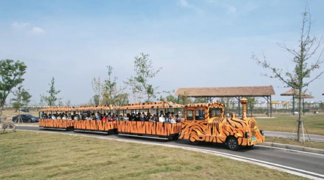 园区内有占地1300余亩的车行区域,游客可以自己驾车或是乘坐园区小火车,多视角、沉浸式与野生动物近距离接触。这一区域共分四个组团:以非洲动物展示为主的“风云草场”,以水禽、游禽、涉禽展示为主的“水鸟世界”,以欧亚非草食动物综合展示的“迷雾森林”等。车行区野生动物采用生态散养模式,停车于途中,便有温顺的动物将头伸入车窗与游客亲密接触。