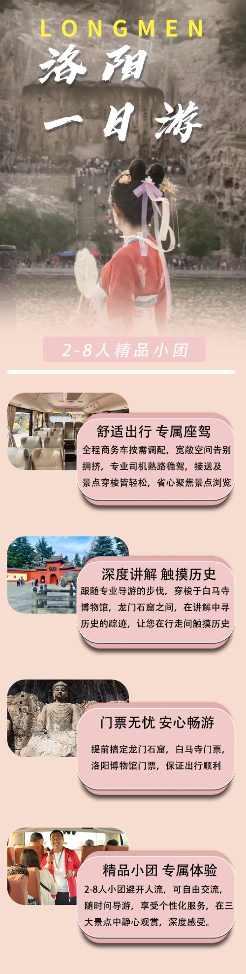 【2-8人小团】龙门石窟+洛阳博物馆(免预约)+白马寺一日游【[轻松亲子游]市区酒店上门接送.资深导游讲解】