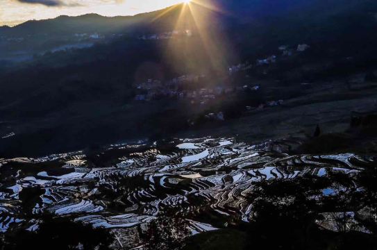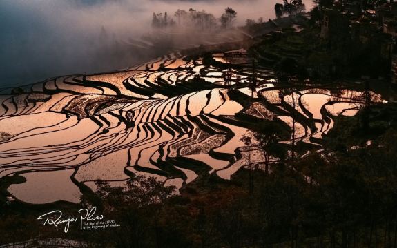 ▲ 若遇云雾升腾,梯田在云隙间时隐时现,耶稣光穿透云层倾泻而下,光束与梯田镜面交织,神圣感扑面而来