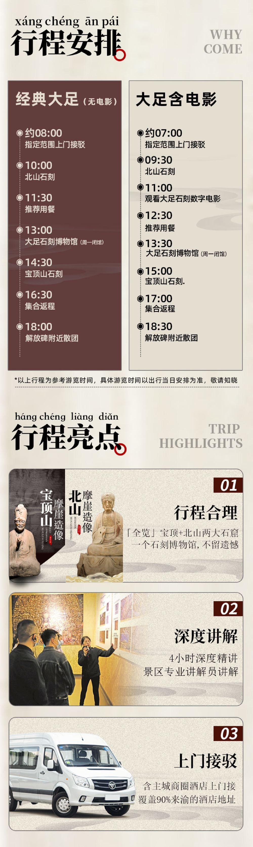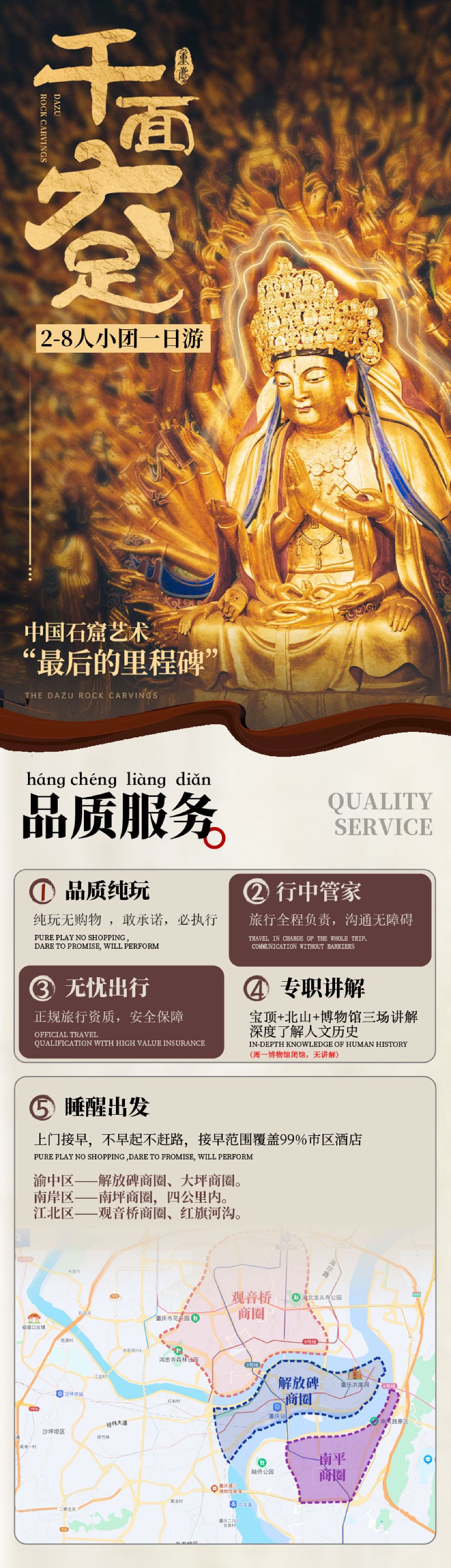 8人小团重庆大足石刻一日游纯玩宝顶山北山博物馆人工4小时精讲【纯玩无购物,每车最多8位游客,商圈酒店上门接,不用自行前往集合】