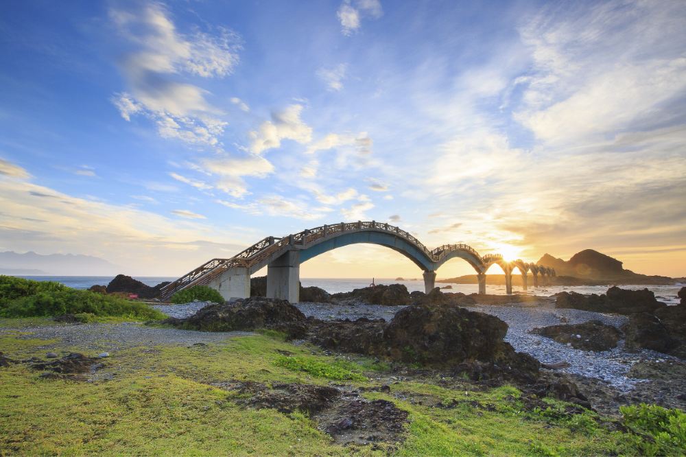 台湾东海岸坐拥浩瀚无边的蓝色太平洋,许多人认为全台美丽的海岸非东海岸莫属!远离城市喧嚣,面对辽阔无尽的太平洋,享受海风吹拂,完全放空自己,静静感受大自然的恩赐。除此之外,还可游览众多以海洋为背景的特色景点:金樽海岸有着绵延三公里的金色柔细沙滩,踩在脚下,十分绵软。抛开烦恼,沉浸大自然为你制造的蓝色浪漫,无忧无虑地享受阳光海滩、鬼斧神工的石礁断崖,在这一片连绵的海岸与大海深情相拥。