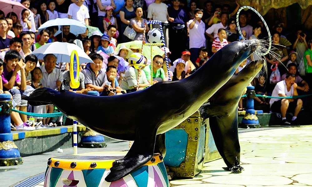 ▲ 大型的海洋哺乳类动物的表演剧场,可容纳二千多名观众。在这里,白鲸、海豚、海狮等大型海洋哺乳类动物将为您奉上精彩表演。