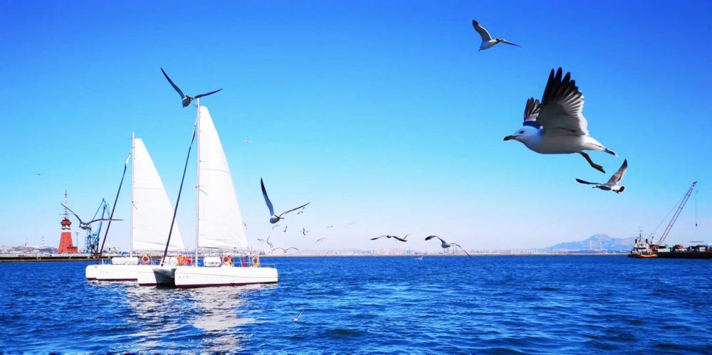 ▲ “海上看大连”的响亮口号从帆船出海开始,扬起船帆乘风破浪,东看大连辉煌城市景象,西品大连百年走过的历史道路,在这时空的临界点感受大连的过去、今天与未来,呼唤飞翔的海鸥,呼吸大海的气息。