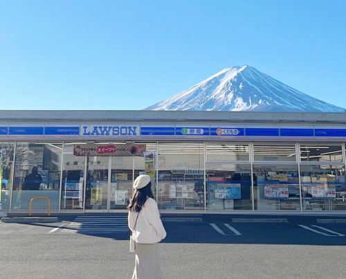 ▲ 罗森便利店 位于富士山下河口湖站的这家罗森,其魅力远不止于商品。因它与街道尽头的富士山恰好构成一幅美好的框景,随手一拍便是明信片般的完美画面,使其成为社交媒体上经久不衰的网红地标。排队打卡,已成为许多游客到此一游的独特仪式。