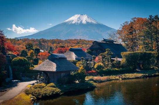 ▲ 【河口湖大石公园】 直面富士山的黄金观景带,湖面倒映着壮丽山景,随手一拍就是大片。 沿湖岸铺展的公园以四季花海闻名-春日薰衣草织就紫毯,夏日向日葵翻涌金浪,秋日波斯菊泼洒彩霞,冬日雪色轻覆湖山。