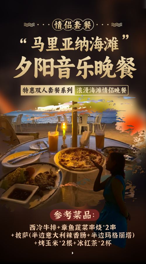 双人特色餐-马里亚纳海滩情侣套餐(夕阳+音乐会):