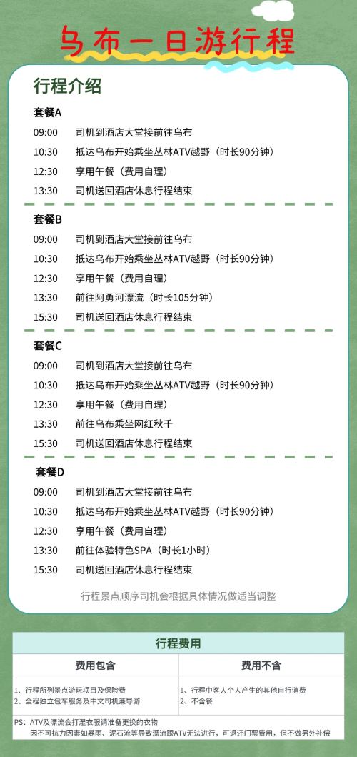 乌布ATV越野车 + 阿勇河漂流 · 双重刺激行程注意事项