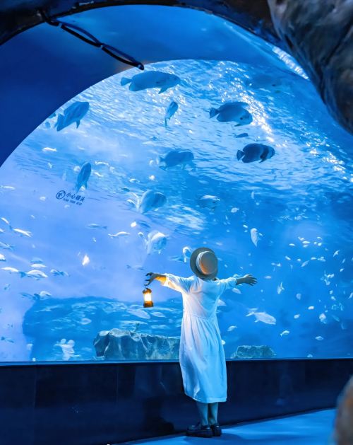 ▲ 有全国大的77.8平方米,呈拱形观赏面的180°全景海底隧道,更有色彩艳丽,形态优美的珊瑚区等。在这里,我们与海洋精灵一起融入深海世界,让您体会到其妙与快乐!