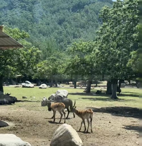▲ 到达园区先坐投食车(一圈后会回到起点) ️草原区:能看到十几个品种的羊鹿牛马都是在草原上自由奔跑的~ ️猛兽区:可以喂食老虎白虎狮子讲解员会发放肉块超近距离喂食大猫咪~ ️草原猛兽区:可以看到黑熊狼群上个园区没投喂出去的肉块可以继续喂食