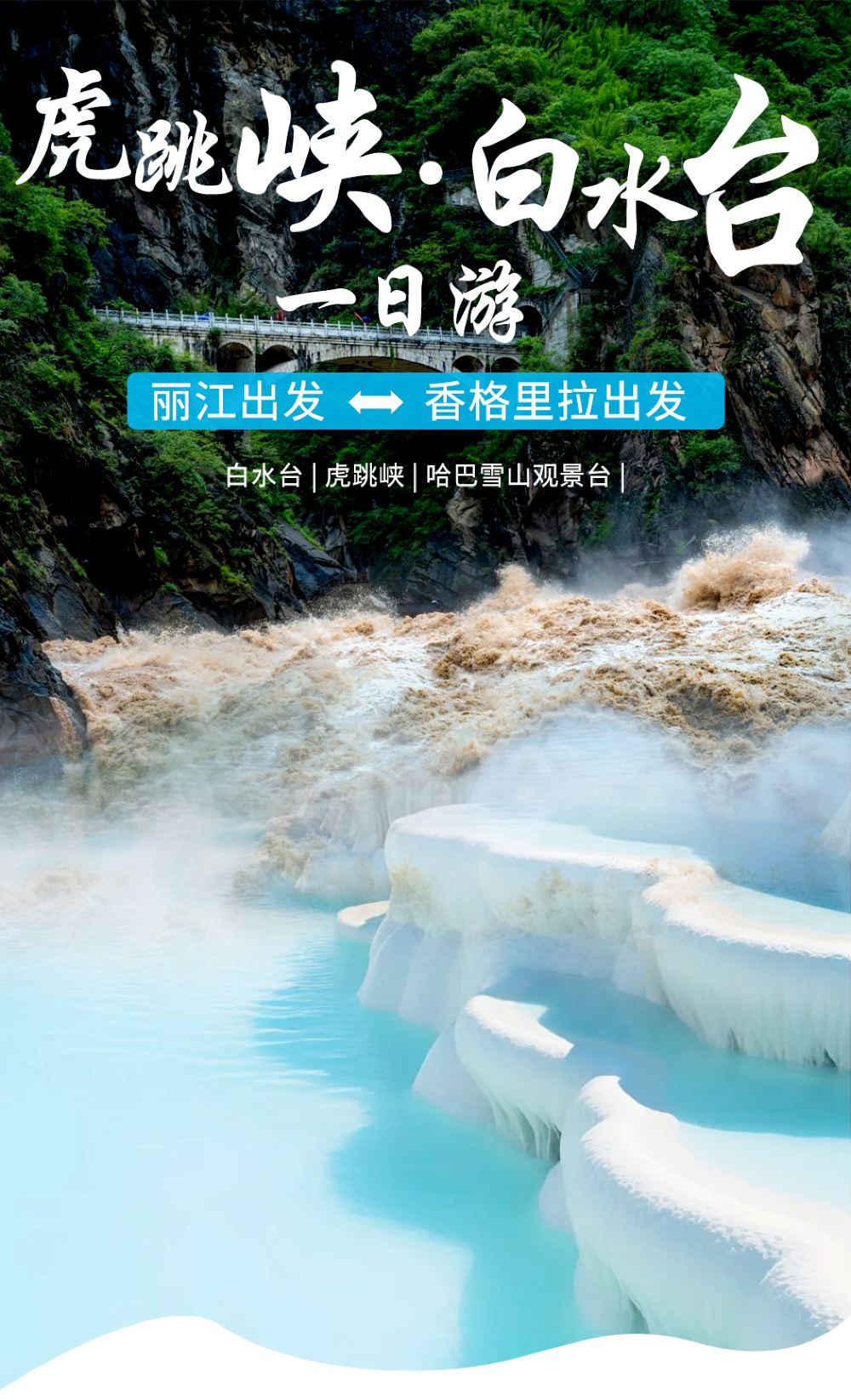 丽江香格里拉虎跳峡白水台一日游纯玩小团团探秘棉花堡白水台【纯玩无购物,老师傅带你畅游虎跳峡和白水台!】