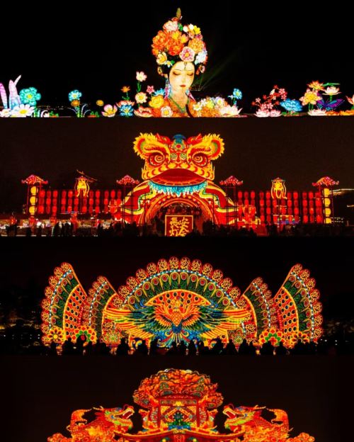 ▲ 亮点:延续了水路花灯璀璨与浪漫,围绕唐诗、唐文化等元素,通过“龙马山河”、“长安千寻”、“花朝良辰”等主题,打造了万盏花灯齐亮、灿若星河的唐朝上元夜