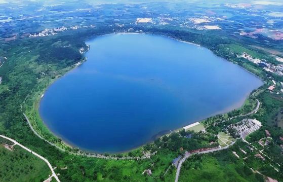 ▲ 湛江玛珥湖,14万年前火山爆发形成,湖水如镜,旱不枯涝不溢,自我净化。世界地质公园核心,集火山遗迹、湖光山色于一体,誉为"天然年鉴"。
