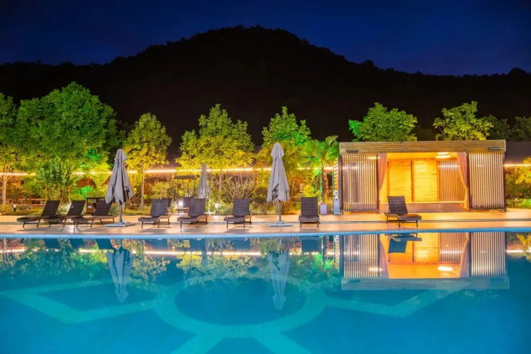 奇石河露天养生温泉是景区重点打造的休闲养生项目,泉水富含铁、锍、氡、钙、镁等48种有益身心的矿物质元素,对神经性骨痛、腰肌劳损、等多种疾病有显著疗,旅客在游玩住宿之余可以释放身心,消除疲劳。