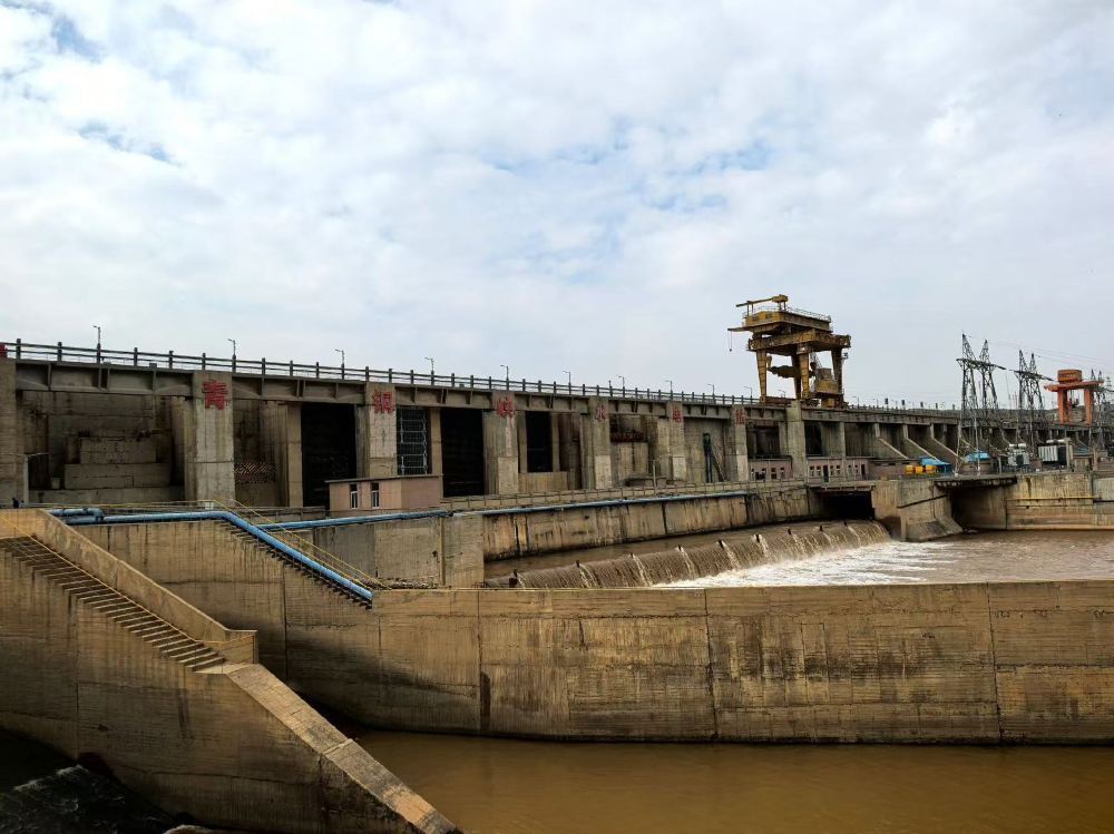 ▲ 水电站主体由厚重的混凝土构筑,呈沉稳的灰褐色,彰显工业建筑的坚固质感。建筑上方 “青铜峡” 三个红色大字清晰醒目,右侧坝体处水流倾泻而下,激起白色水花,尽显水利工程的磅礴力量。坝体上方架设着大型黄色起重机械,旁边输电塔等设施林立,凸显其发电与调控功能。背景中,云层密布的天空与水电站的雄伟相互映衬,既展现了人类工程智慧,也传递出黄河水奔腾的自然气势,诠释了水利工程与自然环境的融合之美。