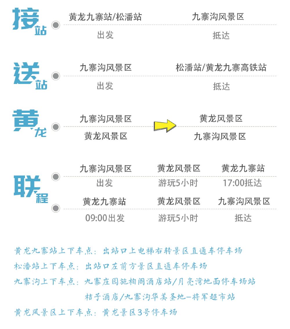 九寨沟一日游【九寨沟-黄龙九寨站单程直通车】【49座大巴车,拼车更有性价比,可选保姆车和商务车~】