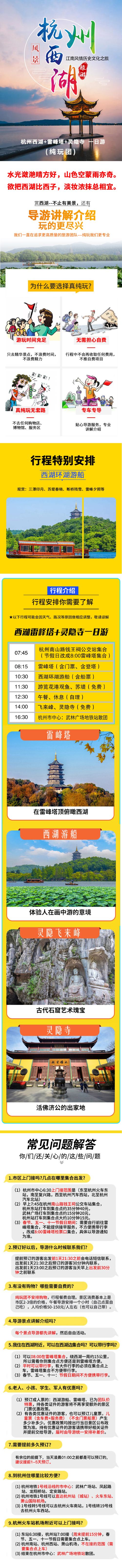 杭州西湖雷峰塔灵隐寺一日游【15人纯玩团导游讲解含所有门票】【高品纯玩无购物,门票全含无自费,行程透明无套路!】