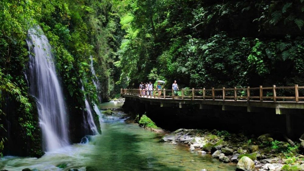 黑山谷:黑山谷有着“中国美丽的养生峡谷、国家 AAAAA 级景区、国家地质公园”的称号;景区全长 13 公里;景区由峻岭、峰林、幽峡、峭壁、森林、竹海、飞瀑、碧水、溶洞、仿古栈道、浮桥、云海、田园、原始植被等各具特色的景观组成;地形独特,风景绝殊,构成了千姿百态的自然奇观;这里保存着地球上同纬度为数不多的亚热带和温带完好的自然生态,森林覆盖率达 97%,被专家誉为“渝黔生物基因库”,是目前重庆地区为止较大的、原始生态保护较为完好的自然生态风景区。景区全长 13 公里,车行区 6 公里(可自费电瓶车 30 元/人)、步行区 6 公里、索道 1 公里(可自费索道 30 元/人)三段组成(游览时间 4—5 小时)。