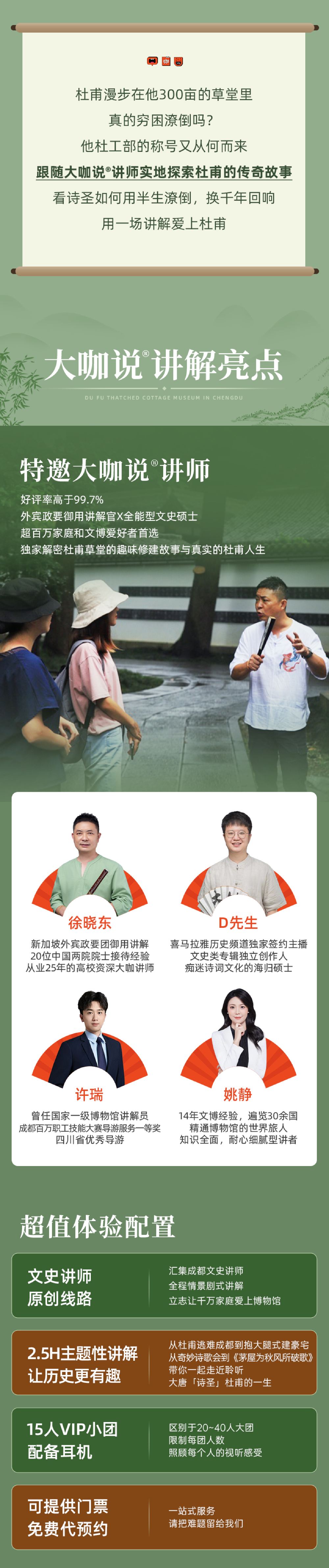 “大咖说”成都杜甫草堂2.5小时精讲·15人小团【含门票】【【签约大咖】 汇集古蜀研究领域明星大咖,高于常规导游讲解能力】