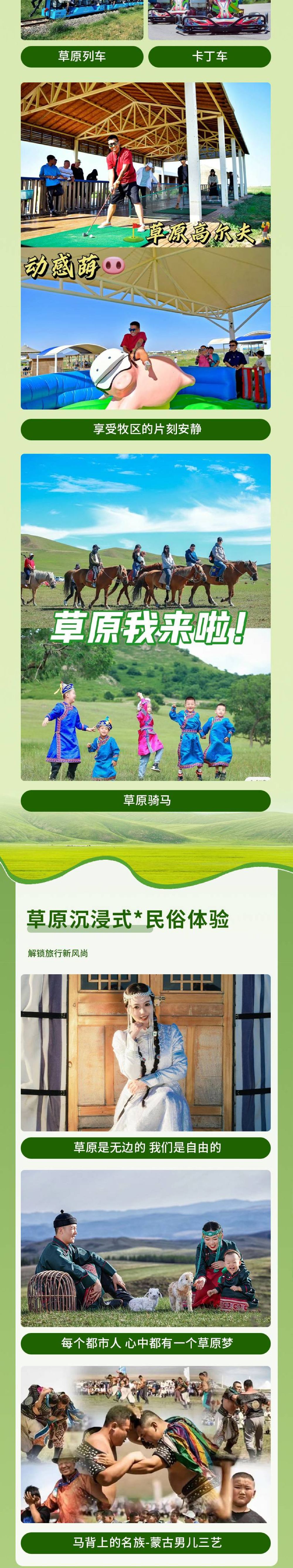 那达慕套票(298元)包含项目:(22选12)1-水道漂流2-实景马术剧《英雄》 3-篝火晚会 4-飞天草原 5-马上照相6- 滑草 7-轨道车/草原列车 8-迷途乐园 9-儿童乐园 10-草原高尔夫11-碰碰车12- 娱乐卡丁车/儿童卡丁车 13-草地保龄球 14-蒙古火炮 15-室内射箭馆 16-抓 羊比赛 17-模拟套马 18-动感萌猪/旋转跳跳机 19-投喂羊羔 20-射箭 21-投壶 22 -蒙文签字