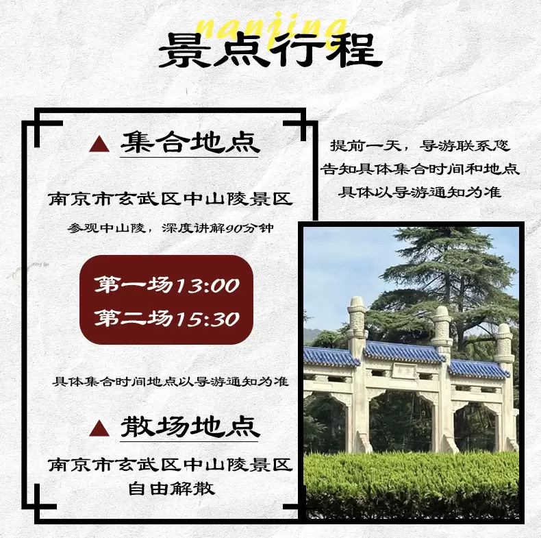 中山陵景区一日游【专业人工导游讲解,赠送耳麦,含门票预约】