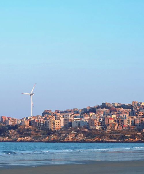 ▲ 泉州风车岛(又称小岞风车岛),地处泉州市惠安县小岞镇,是泉州的陆域东极,三面环台湾海峡,呈现原生态的半岛滨海风貌,这里分布着数十座白色巨型风力发电机,沿山脊与海岸线有序排布,叶片随风缓缓转动,与碧海蓝天、金色沙滩、嶙峋海蚀礁石相映成趣。岸边散落着闽南特色石头厝渔村,能看到惠安女的传统劳作场景,渔港内停泊着各式渔船,兼具工业景观与乡土风情。日出时分,晨光洒在风车与海面;日落时,暖色调光影铺满海岸线,是很受欢迎的观海与摄影去处。