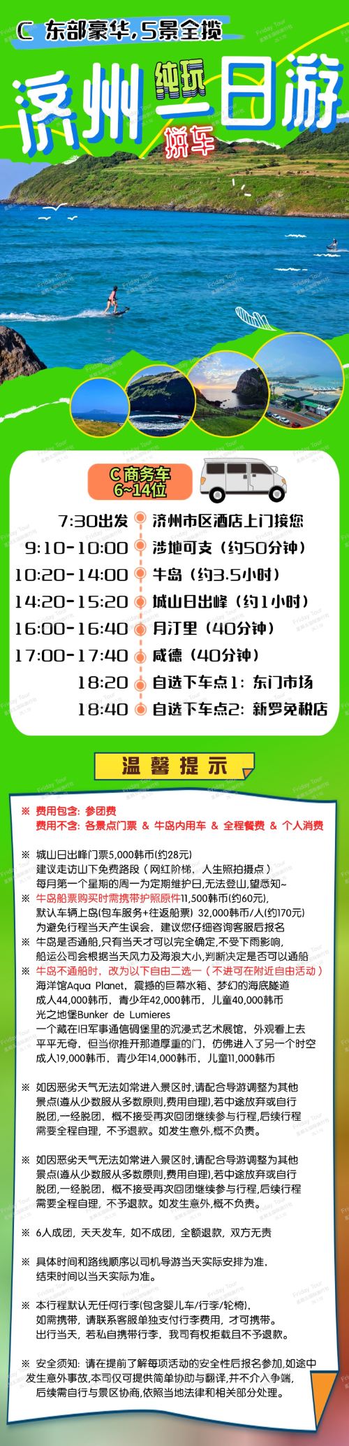 韩国济州岛牛岛豪华一日游【涉地+城山+牛岛+月汀里+咸德】【C 5景豪华路线 [涉地可支+城山日出峰+牛岛+月汀里+咸德] 东部豪华全景,东部沙滩一览无余】