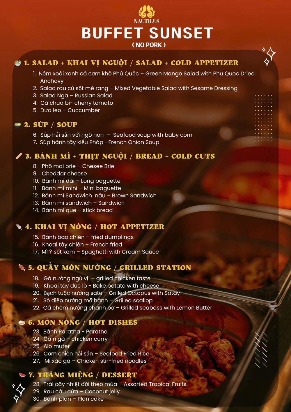 ▲ 参考菜单-英语/越南语(菜单可能会根据季节有所调整,具体以实际安排为准)